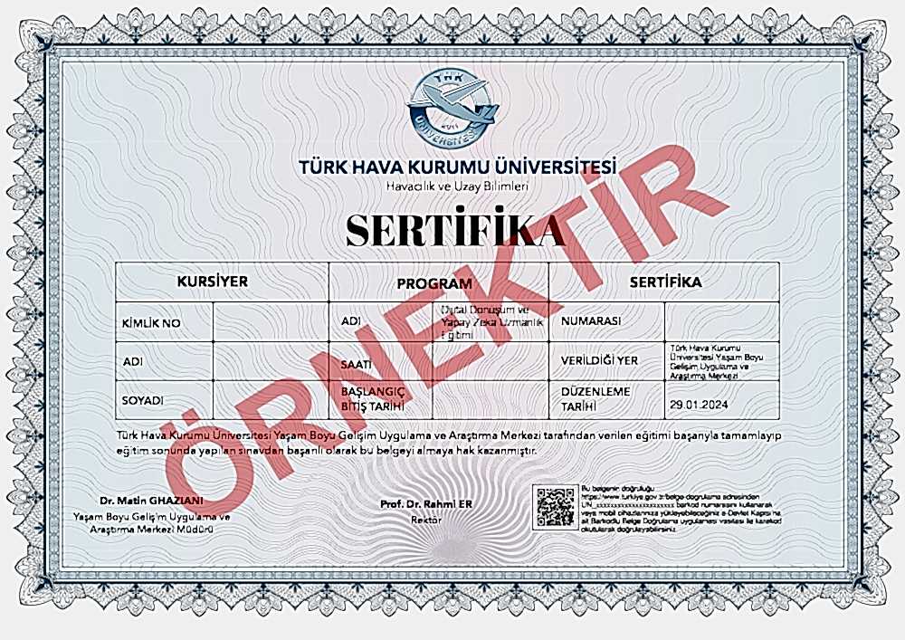 Evet eğitim sonunda yapılan online sınavda başarılı olan öğrencilerimize Türk Hava Kurumu Üniversitesi onaylı sertifika verilmektedir.