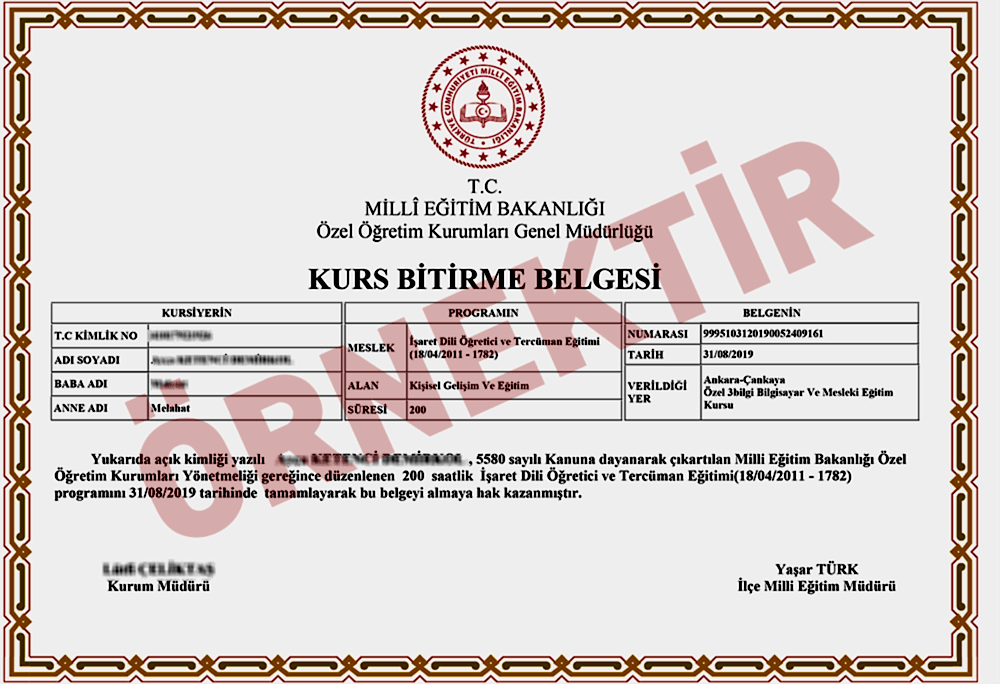Eğitim danismani Zahir Hanım ve Arife Hanıma teşekkür ederim.Almış olduğum kursların hepsinde çok ilgiliydiler kesinlikle faydasının olduğunu düşünüyorum.Calistigim Rehabilitasyon merkezinde işitme engelli öğrencimiz var ve istediğim gibi iletişim sağlayabiliyorum buda beni çok mutlu ediyor çevremizde isitme engelli kişilerle diyalog kurup onlarında sıkıntılarıni anlayıp sohbet etmek onlari çok mutlu ediyor.Ayni zamanda bu sertifika ile halk eğitim merkezinde de kurs verilebilmesi çok güzel