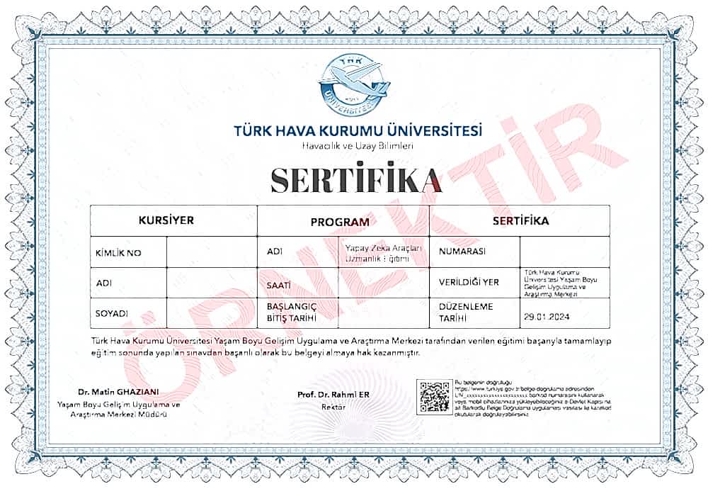 'Yapay Zeka Uygulamaları' eğitimi, bu konuda önemli bir bilgi birikimi ve pratik deneyim sağladı. Eğitim boyunca, hem teorik yapay zeka bilgilerini öğrendim hem de bu bilgileri gerçek uygulamalar üzerinde nasıl kullanacağımı öğrendim. Burak hocanın konuya hakimiyeti ve tecrübesi, eğitimin kalitesini önemli ölçüde artırdı. Yapay zeka konseptlerini, uygulamalarını ve teknolojilerini anlamak için çeşitli öğrenme materyalleri ve örnekler sunuldu. Özellikle, eğitimin pratik odaklı yaklaşımını takdir ettim. Gerçek dünya senaryolarını modellemek ve çözmek için yapay zeka tekniklerini kullanmamız istendi. Bu, edindiğim bilgileri pratiğe dökme ve kendi projelerimde nasıl kullanacağımı görmeme yardımcı oldu. Bu eğitim, yapay zeka ve makine öğrenmesi alanında kendini geliştirmek isteyen herkese tavsiye ederim, sadece bilgilerinizi genişletmekle kalmıyor, aynı zamanda bu bilgileri gerçek dünya uygulamalarına nasıl uygulayacağınızı da gösteriyor. 5 yıldızı kesinlikle hak eden bir eğitim deneyimi oldu.