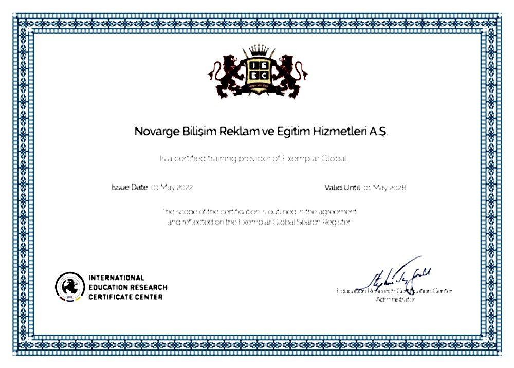 Novarge Bilişim Reklam ve Eğitim Hizmetleri A.Ş. olarak Uluslararası Eğitim Akredite Merkezi İEE.CENTER üyesiyiz. Üyelik belgemizi aşağıdan görüntüleyebilirsiniz.